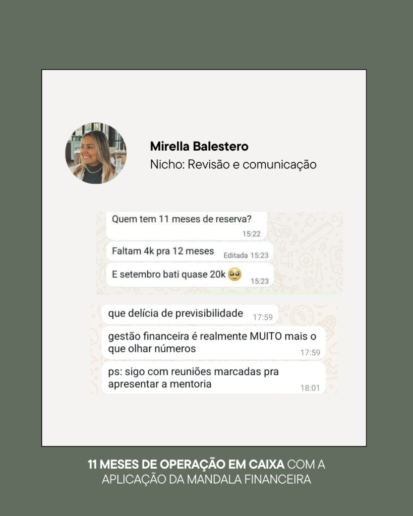 Especialista em gestão financeira estratégica para empresas, economista com mais de 10 anos de experiência, nos últimos 2 anos ajudou diversas empresárias a aumentarem em 10 vezes a sua lucratividade usando a estratégia da mandala financeira.