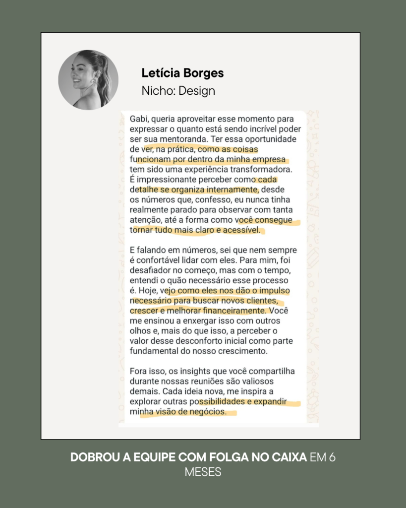 Eu já ajudei a diversas empresárias de nichos diferentes a implementar essa estratégia, posso afirmar com segurança, ela pode melhorar o resultado de qualquer negócio, gerando mais lucro todos os meses em qualquer empresa.
